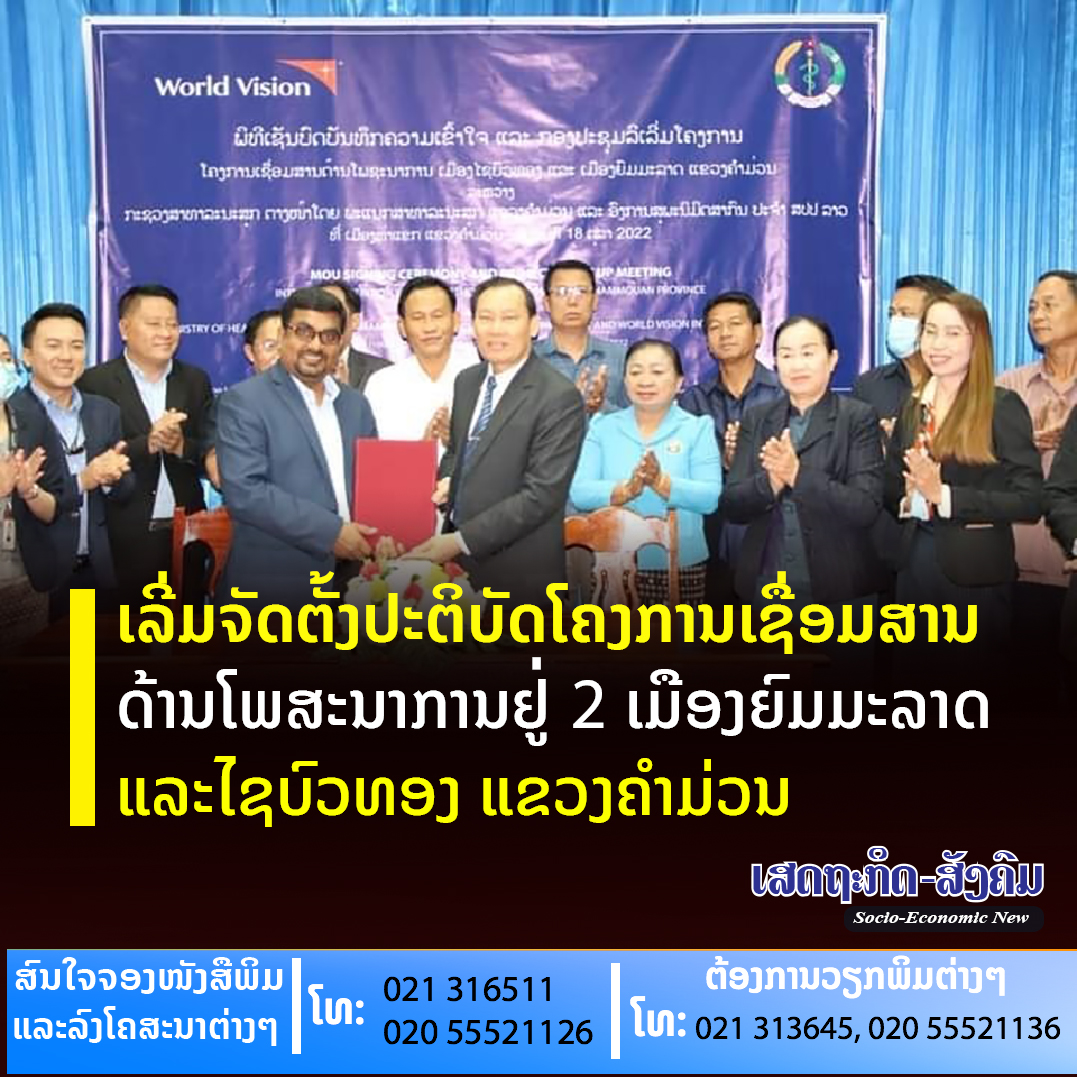ພິທີເຊັນບົດບັນທຶກຄວາມເຂົ້າໃຈຂອງໂຄງການເຊື່ອມສານດ້ານໂພສະນາການ ຢູ່ 2 ເມືອງ ຍົມມະລາດ ແລະໄຊບົວທອງແຂວງຄຳມ່ວນ