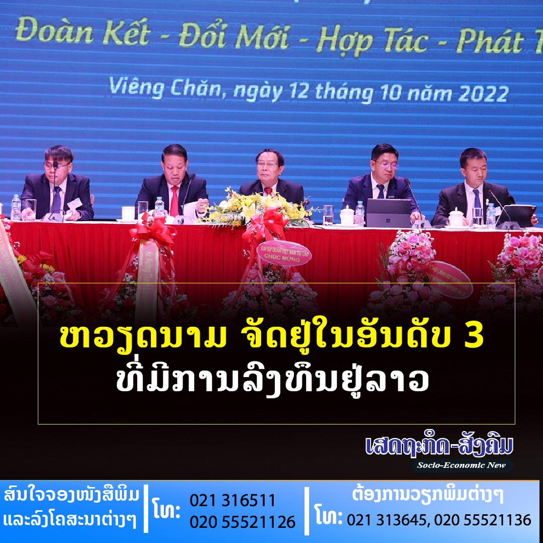 ຂປລ. ປັດຈຸບັນ, ວິສາຫະກິດຫວຽດນາມທີ່ມາລົງທຶນຢູ່ ສປປ ລາວ ມີທັງໝົດ 417 ໂຄງການ, ມູນຄ່າການລົງທຶນທັງໝົດ 4,3 ຕື້ໂດລາສະຫະລັດ ແລະຖືກຈັດຢູ່ໃນອັນດັບ 3 ໃນຈໍານວນ 54 ປະເທດ ແລະເຂດແຄ້ວນທີ່ມີການລົງທຶນຢູ່ລາວ.