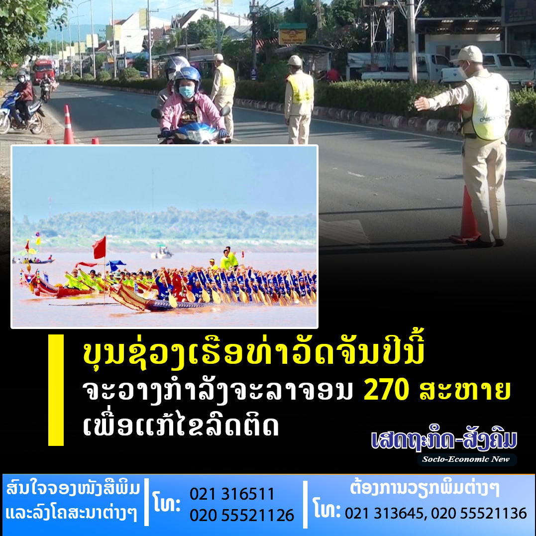 ພະແນກຕໍາຫຼວດຈະລາຈອນ ນະຄອນຫຼວງວຽງຈັນ ກຽມພ້ອມກຳລັງຕໍາຫຼວດຈະລາຈອນ ທັງໝົດ 271 ສະຫາຍ ເຂົ້າຮ່ວມປ້ອງກັນຄວາມປອດໄພ, ຄວາມເປັນລະບຽບຮຽບຮ້ອຍໃນງານບຸນຊ່ວງເຮືອທີ່ທ່າວັດຈັນເນື່ອງໃນໂອກາດບຸນອອກພັນສາ ປະວໍລະນາ ປະຈໍາປີ 2022