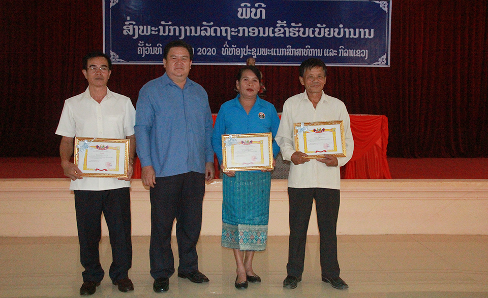 ພະແນກສຶກສາທິການ ແລະກີລາແຂວງໄຊຍະບູລີ ໄດ້ຈັດພິທີປະກາດພະນັກງານເຂົ້າຮັບອຸດໜູນບຳນານໃນຕອນແລງວັນທີ 17 ກັນຍາ 2020 ທີ່ຫ້ອງປະຊຸມພະແນກສຶກສາທິການ ແລະກີລາແຂວງໄຊຍະບູລີ, ໂດຍການເປັນກຽດເຂົ້າຮ່ວມຂອງທ່ານ ດວງຕາ ໄຊວຸດ ຮອງເລຂາພັກແຂວງ,