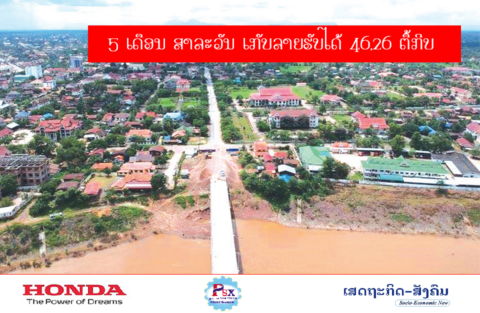 ໄລຍະ 5 ເດືອນຜ່ານມາ ແຂວງສາລະວັນ ປະຕິບັດໄດ້ການຈັດເກັບລາຍຮັບໄດ້ທັງໝົດ 46,26 ຕື້ກີບ ເທົ່າກັບ 26,74% ຂອງແຜນການປີທຽບໃສ່ໄລຍະດຽວກັນກັບປີແລ້ວຫຼຸດ 6,46% ໃນນັ້ນລາຍຮັບພູດສູນກາງປະຕິບັດ ໄດ້11,07 ຕື້ກີບ ເທົ່າກັບ 17,07% ຂອງແຜນການປີ,