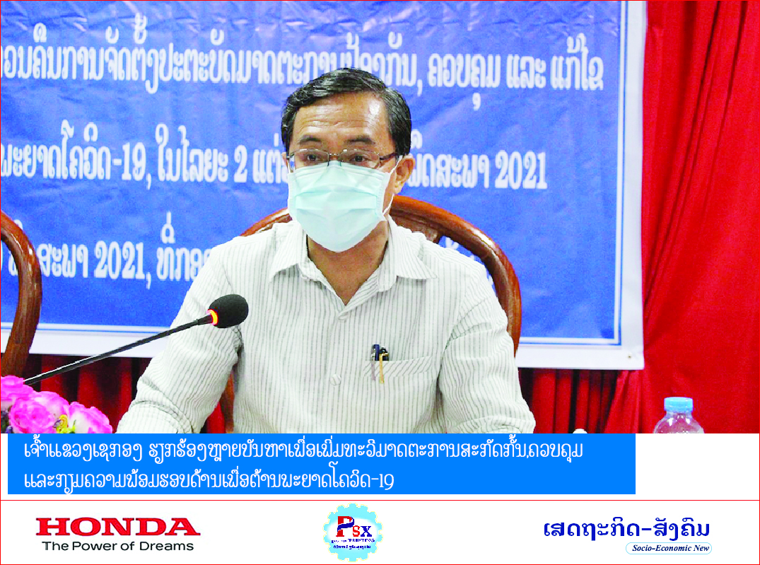 ໃນໂອກາດເປັນປະທານຮ່ວມກອງປະຊຸມທົບທວນຄືນການຈັດຕັ້ງປະຕິບັດວຽກງານປ້ອງກັນ,ຄວບຄຸມ ແລະແກ້ໄຂພະຍາດໂຄວິດ-19 ຂອງຄະນະກໍາມະການສະເພາະກິດຂັ້ນແຂວງໃນວັນທີ 19 ພຶດສະພາ 2021 ທີ່ຫ້ອງປະຊຸມຊັ້ນ III