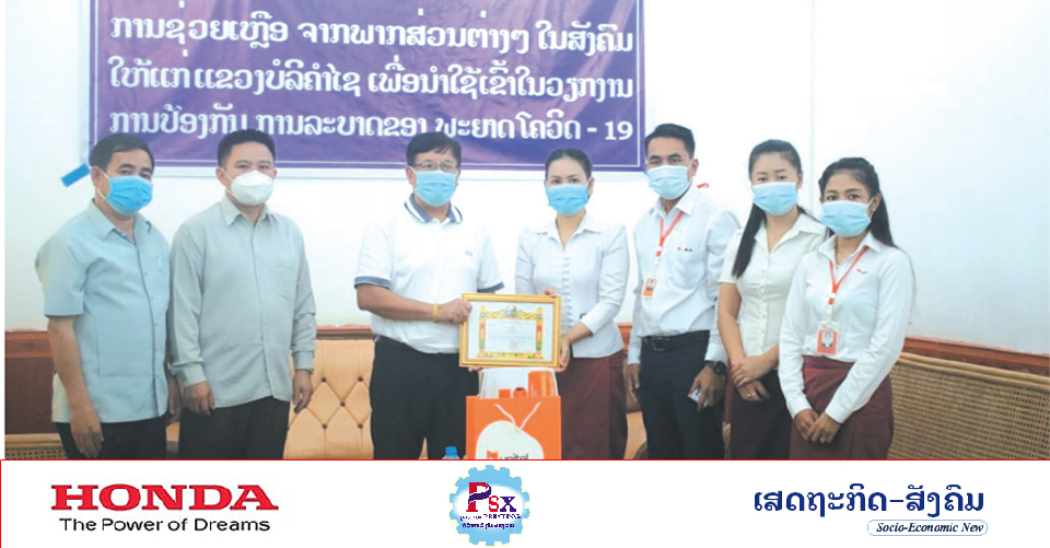 ວັນທີ 19 ພຶດສະພາ 2021 ທີ່ຫ້ອງວ່າການແຂວງບໍລິຄໍາໄຊ, ທ່ານ ນາງ ດາວວອນ ເພັດສານຸພົນ ອໍານວຍການ ບໍລິສັດ ສະຕາໂທລະຄົມ (ຢູນິເທວ) ສາຂາແຂວງບໍລິຄໍາໄຊ ພ້ອມດ້ວຍຄະນະໄດ້ປະກອບສ່ວນຊຸກຍູ້ມອບມູນຄ່າໂທ ແລະ ດາຕ້າອິນເຕີເນັດລວມມູນຄ່າທັງໝົດ 216,89 ລ້ານກີບ,