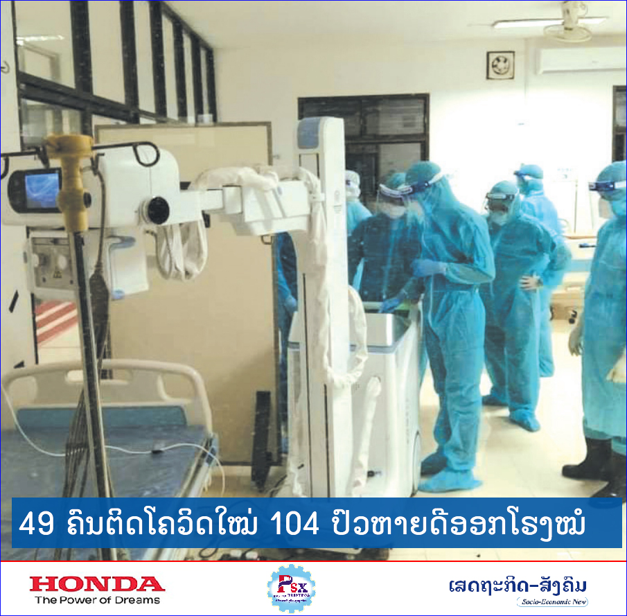49 ຄົນຕິດໂຄວິດໃໝ່ 104 ປົວຫາຍດີອອກໂຮງໝໍ