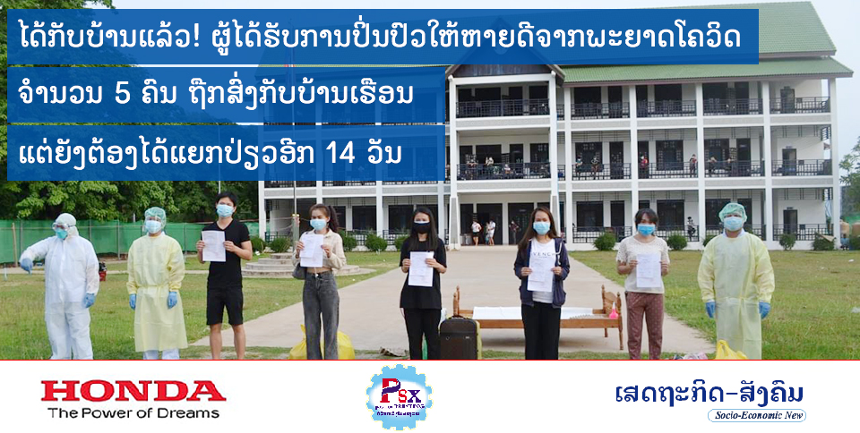 5 ຜູ້ປ່ວຍໂຄວິດຢູ່ສະຫວັນປິ່ນປົວຫາຍດີກັບບ້ານເຮືອນ