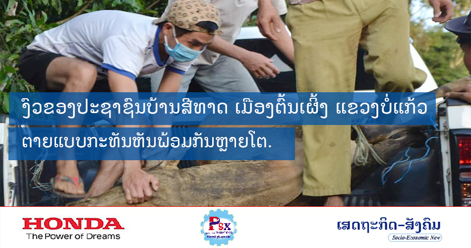 ວັນທີ 16 ພຶດສະພາ 2021 ນີ້ມີງົວຂອງປະຊາຊົນບ້ານສີທາດ ເມືອງຕົ້ນເຜິ້ງ ແຂວງບໍ່ແກ້ວ ລົ້ມຕາຍແບບກະທັນຫັນພ້ອມກັນຫຼາຍໂຕຕາມການລົງກວດກາຕົວຈິງຂອງເຈົ້າໜ້າທີ່ກ່ຽວຂ້ອງຈຶ່ງໄດ້ຮູ້ວ່າເປັນງົວຂອງ ທ້າວ ບຸນຕານ ວົງປັນຍາ ປະຊາຊົນບ້ານດັ່ງກ່າວ.