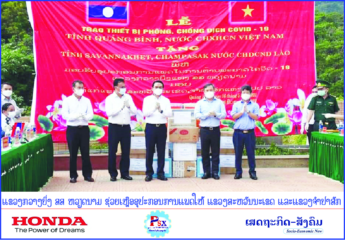ພິທີມອບ-ຮັບການຊ່ວຍເຫຼືອ, ອຸປະກອນການແພດລະຫວ່າງ ແຂວງກວາງບິ່ງ ສສ ຫວຽດນາມ ໃຫ້ແຂວງສະຫວັນນະເຂດ ແລະແຂວງຈຳປາສັກ ສປປ ລາວ ເພື່ອຮັບໃຊ້ເຂົ້າໃນວຽກງານສະກັດກັ້ນ ແລະແກ້ໄຂການລະບາດຂອງພະຍາດໂຄວິດ-19 ມູນຄ່າ 2 ຕື້ດົງ ຫຼືເທົ່າກັບ 842 ລ້ານກວ່າກີບ