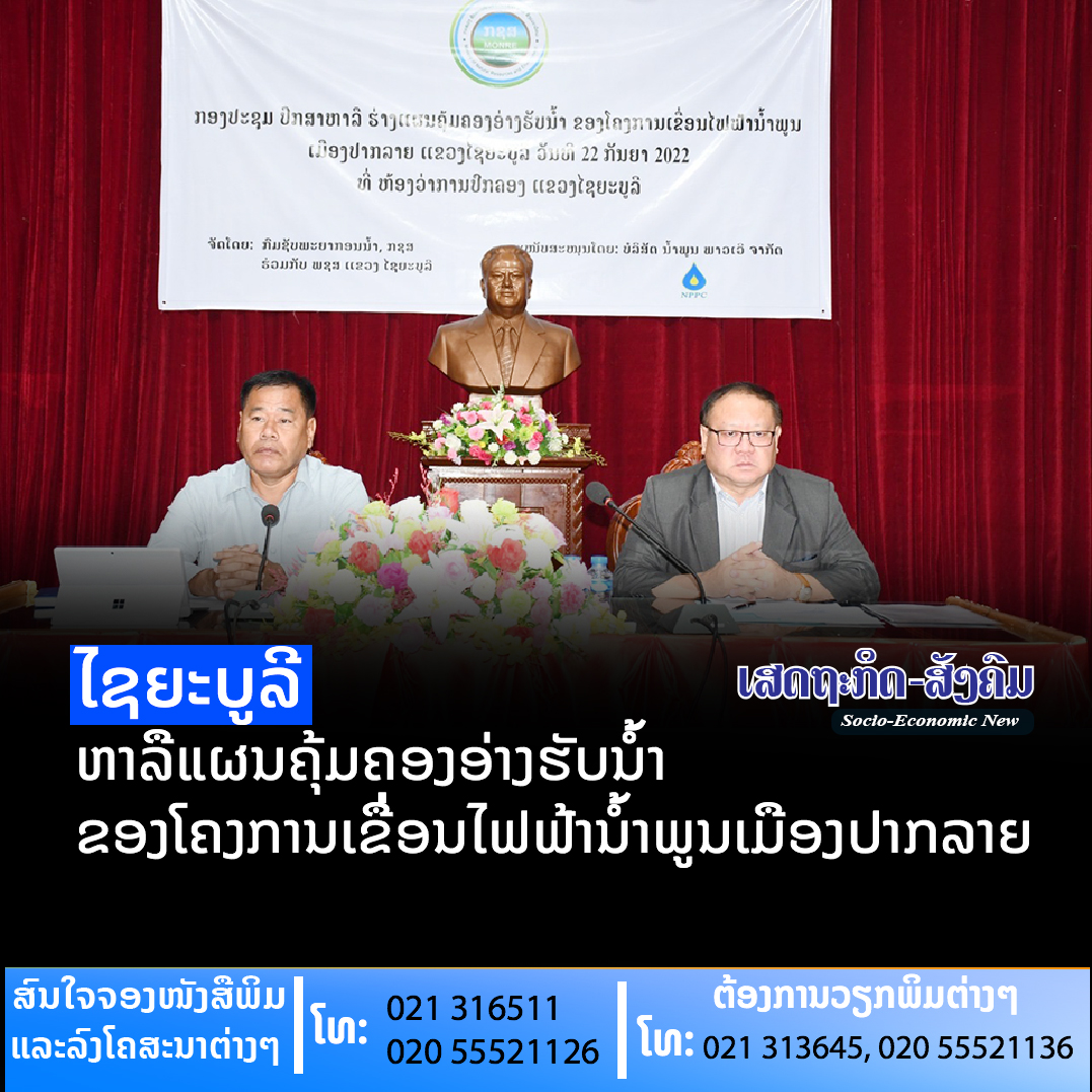 ກອງປະຊຸມປຶກສາຫາລືແຜນຄຸ້ມຄອງອ່າງຮັບນໍ້າຂອງໂຄງການເຂື່ອນໄຟຟ້ານໍ້າພູນເມືອງປາກລາຍແຂວງໄຊຍະບູລີ ໄດ້ຈັດຂຶ້ນໃນວັນທີ 22 ກັນຍາ 2022