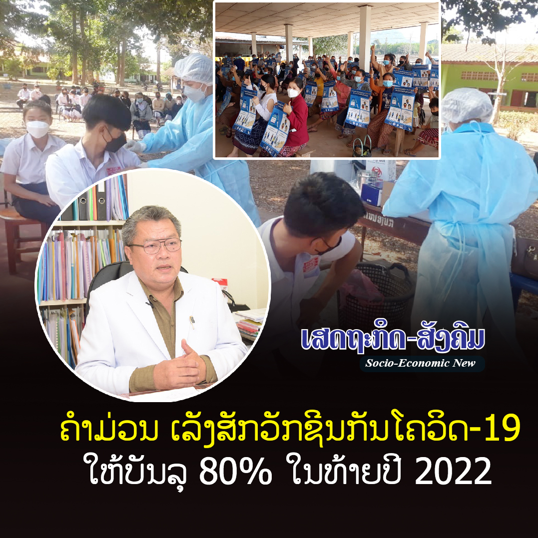 ໃນວັນທີ 15 ກັນຍາຜ່ານມາ ທ່ານ ແສງທອງ ເສີມລຳວັນ ຮອງຫົວໜ້າພະແນກສາທາລະນະສຸກ ແຂວງຄຳມ່ວນ ໄດ້ລາຍງານໃຫ້ຮູ້ວ່າ: ປະຈຸບັນ, ແຂວງຄຳມ່ວນ ພວມເລັ່ງຈັດຕັ້ງປະຕິບັດວຽກງານສັກວັກຊີນກັນໂຄວິດ-19 ໃຫ້ບັນລຸຕາມເປົ້າໝາຍທີ່ວາງໄວ້ 80% ຂຶ້ນໄປໃນທ້າຍປີ 2022 ນີ້,