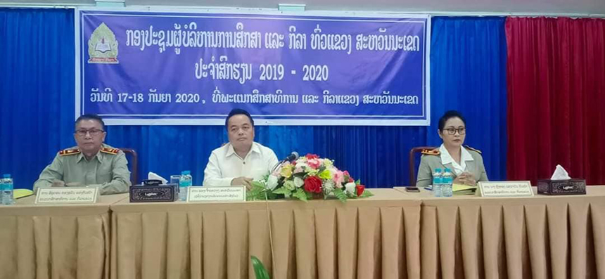 ໃນລະຫວ່າງວັນທີ 17-18 ກັນຍາ 2020 ທີ່ຫ້ອງປະຊຸມພະແນກສຶກສາທິການ ແລະກີລາແຂວງສະຫວັນນະເຂດໄດ້ຈັດກອງປະຊຸມຜູ້ບໍລິຫານການສຶກ ແລະກີລາປະຈຳສົກປີ 2019- 2020 ທົ່ວແຂວງຂຶ້ນໂດຍໃຫ້ກຽດການເປັນປະທານຂອງທ່ານ ວຽງ ທະວີສອນ ເທບພະຈັນ ຄະນະປະຈຳພັກແຂວງຜູ້ຊີ້ນຳ