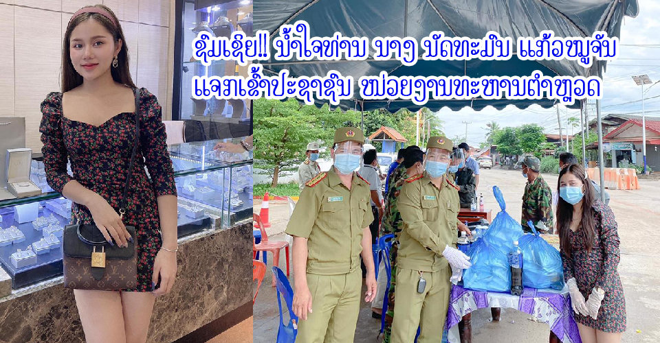 ນໍ້າໃຈຄົນລາວບໍ່ເຄີຍຖີ້ມກັນ ຊົມເຊີຍ ນາງ ນັດທະມົນ ແກ້ວໝູຈັນ ທີ່ເພິ່ນມີນໍ້າໃຈຈິດໃຈດີຊ່ວຍເຫຼືອແບ່ງເບົາສັງຄົມໃນຍາມລຳບາກໂດຍສະເພາະຊ່ວງວິດກິດໂລກລະບາດພະຍາດໂຄວິດ-19 ເພິ່ນກໍ່ໄດ້ນໍາເອົາຂອງກິນຈຳນວນໜຶ່ງແຈກໃຫ້ທາງປະຊາຊົນນັກສຶກສາ ແລະທະຫານຕໍາຫຼວດທີ່ກຳລັງປະຕິບັດໜ້າທີ່.