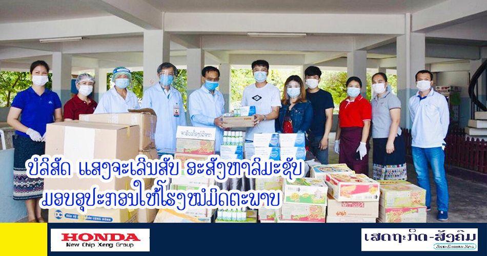 ບໍລິສັດ ແສງຈະເລີນສັບ ອະສັງຫາລິມະຊັບ ຈຳກັດຜູ້ດຽວ ຮ່ວມກັບໝູ່ເພື່ອນສົບທົບຊື້ເຄື່ອງອຸປະກອນການແພດ ແລະອາຫານໃຫ້ແພດໝໍເພື່ອເປັນການຊຸກຍູ້ຊ່ວຍເຫຼື່ອແບ່ງເບົາໃຫ້ແພດໝໍໄດ້ມີກຳລັງ ແລະປະຕິບັດໜ້າທີ່