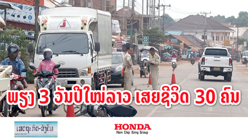 ຂປລ. ໃນໄລຍະ 3 ວັນ ຂອງການສະຫຼອງບຸນປີໃໝ່ລາວ ພສ 2564 ແຕ່ວັນທີ 14-16 ເມສາ 2021, ທົ່ວປະເທດມີອຸບັດເຫດທາງທ້ອງຖະໜົນເກີດຂຶ້ນທັງ ໝົດ 220 ກວ່າລາຍ, ມີພາຫະນະເປ່ເພ 400 ກວ່າຄັນ, ມີຜູ້ໄດ້ຮັບບາດເຈັບ 390 ກວ່າຄົນ ແລະເສຍຊີວິດທັງໝົດ 30 ຄົນ.