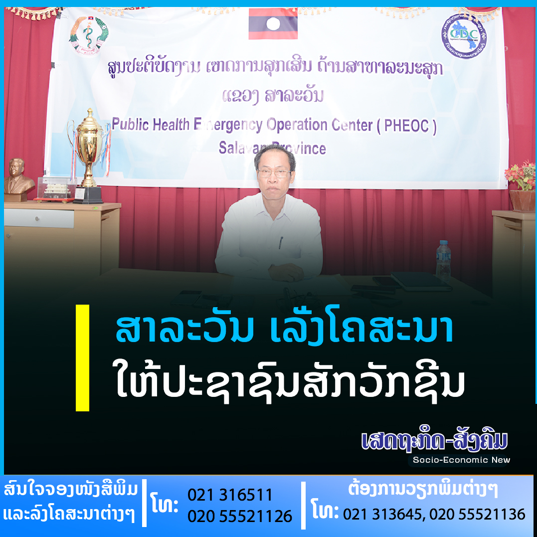 ທ່ານ ດຣ ດາວວົງ ສຸລິນທາ ຄະນະພະແນກສາທາລະນະສຸກແຂວງສາລະວັນ ໃຫ້ສຳພາດໃນໂອກາດສື່ມວນຊົນຈາກສູນກາງເຄື່ອນໄຫວເກັບກຳຂໍ້ມູນກ່ຽວກັບການນຳໃຊ້ໂທລະໂຄ່ງ LCD ລຳໂພງ ແລະວຽກງານສັກວັກຊີນປ້ອງກັນໂຄວິດ-19