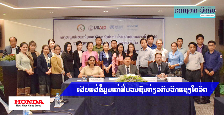ວັນທີ 31 ຜ່ານມາທີ່ໂຮງແຮມລາວພຣາຊາ ນະຄອນຫຼວງວຽງຈັນ ສູນສື່ສານເພື່ອສຸຂະພາບ ແລະສຸຂະສຶກສາກະຊວງສາທາລະນະສຸກໄດ້ຈັດກອງປະຊຸມເຜີຍແຜ່ຂໍ້ມູນແກ່ສື່ມວນຊົນກ່ຽວກັບວັກແຊງໂຄວິດ-19 ເພື່ອແຈ້ງໃຫ້ສື່ມວນຊົນຮູ້ກ່ຽວກັບການຈັດຕັ້ງປະຕິບັດການສັກຢາປ້ອງກັນພະຍາດໂຄວິດ-19