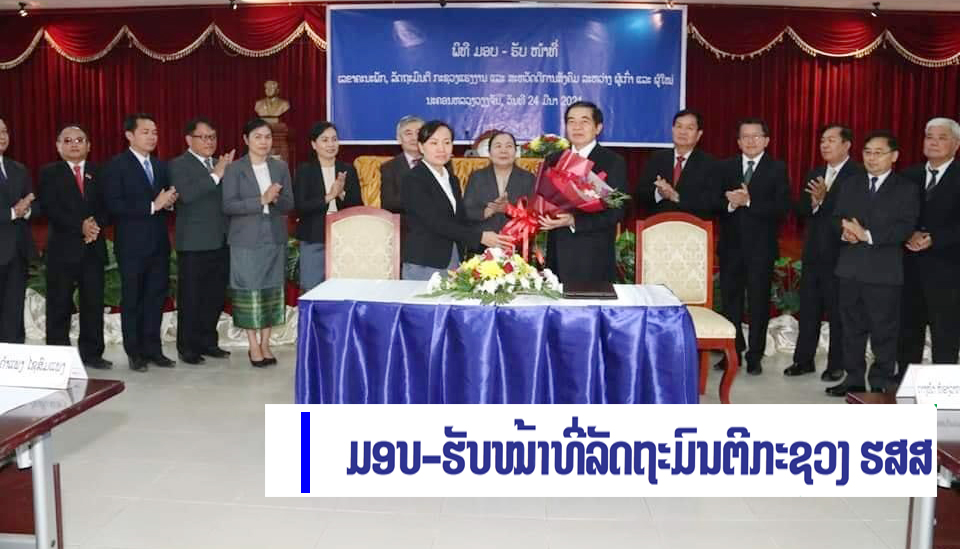 ວັນທີ 24 ມີນາ ທີ່ເຮືອນຮັບແຂກກະຊວງແຮງງານ ແລະສະຫວັດດີການສັງຄົມ (ຮສສ) ໄດ້ຈັດພິທີມອບ-ຮັບໜ້າທີ່ເລຂາຄະນະພັກ, ລັດຖະມົນຕີກະຊວງ ຮສສ ຜູ້ເກົ່າ ແລະຜູ້ໃໝ່ລະຫວ່າງທ່ານ ຄຳແພງ ໄຊສົມແພງ ເລຂາຄະນະພັກ,