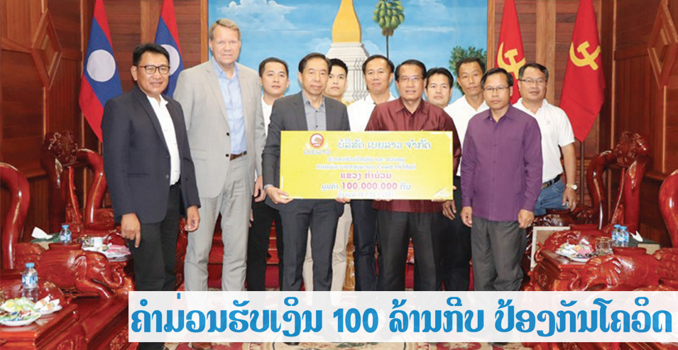 ວັນທີ 16 ມີນາ 2021 ບໍລິສັດ ເບຍລາວ ຈຳກັດ ໄດ້ມອບເງິນຈຳນວນ 100 ລ້ານກີບ ໃຫ້ແກ່ແຂວງຄຳມ່ວນເພື່ອປະກອບສ່ວນເຂົ້າໃນວຽກງານປ້ອງກັນ ແລະສະກັດກັ້ນພະຍາດໂຄວິດ-19 ໂດຍ ເປັນກຽດມອບຂອງທ່ານ ສູນທອນ ພົມມະຈັກ ປະທານບໍລິສັດ ເບຍລາວ ຈຳກັດ