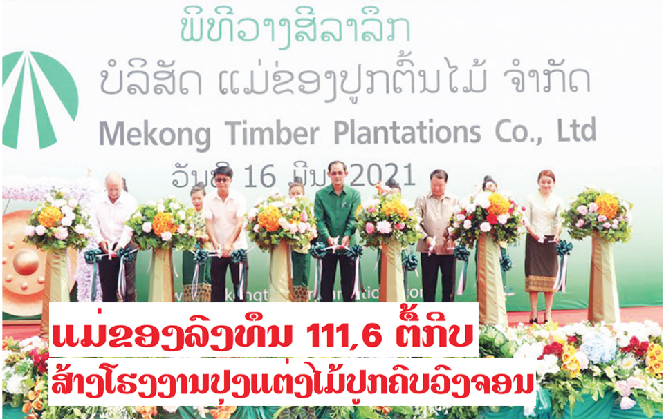 ພິທີວາງສີລາລືກກໍ່ສ້າງໂຮງງານປຸງແຕ່ງໄມ້ປູກຄົບວົງຈອນຂອງບໍລິສັດ ແມ່ຂອງປູກຕົ້ນໄມ້ ຈຳກັດ ຈັດຂຶ້ນໃນວັນທີ 16 ມີນາ 2021 ເປັນກຽດເຂົ້າຮ່ວມມີທ່ານ ຊູຊາດ ໄຊຍະກຸມມານ ຫົວໜ້າກົມປ່າໄມ້ກະຊວງກະສິກຳ ແລະປ່າໄມ້, ທ່ານ ບົວວັນ ວິລະວົງ ຫົວໜ້າກົມອຸດສາຫະກຳ ແລະຫັດຖະກຳກະຊວງອຸດສາຫະກຳ ແລະ ການຄ້າ