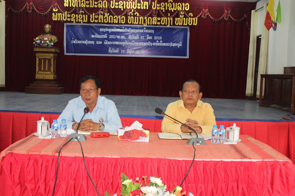 ກອງປະຊຸມເຜີຍແຜ່ຂໍ້ຕົກລົງຂອງທ່ານເຈົ້າແຂວງສະບັບເລກທີ 285/ຈຂ.ຊຍລົງວັນທີ 21 ມີນາ 2019 ວ່າດ້ວຍການຄຸ້ມຄອງແລະພັດທະນາສວນພຶກສາສາດຜາຊ້າງ-ຜາຂີ້ໝິ້ນແຂວງໄຊຍະບູລີ,ໄດ້ຈັດຂຶ້ນໃນວັນທີ 19 ມິຖຸນາ 2019 ທີ່ຫ້ອງປະຊຸມຫ້ອງວ່າການປົກຄອງ ເມືອງໄຊຍະບູລີ,ໂດຍການເປັນປະທານ