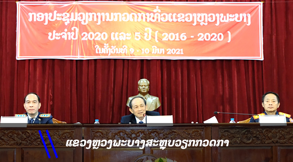 ກອງປະຊຸມວຽກງານກວດກາທົ່ວແຂວງປະຈຳປີ 2020 ໃນ 5 ປີ(2016-2020) ຊຶ່ງໄດ້ຈັດຂຶ້ນໃນລະຫວ່າງວັນທີ 9-10 ມີນາ 2021 ນີ້ທີ່ຫ້ອງປະຊຸມໃຫຍ່ຫ້ອງວ່າການແຂວງຫຼວງພະບາງໂດຍການເປັນປະທານຂອງທ່ານ ຄຳຂັນ ຈັນທະວີສຸກ ເຈົ້າແຂວງໆຫຼວງພະບາງ,