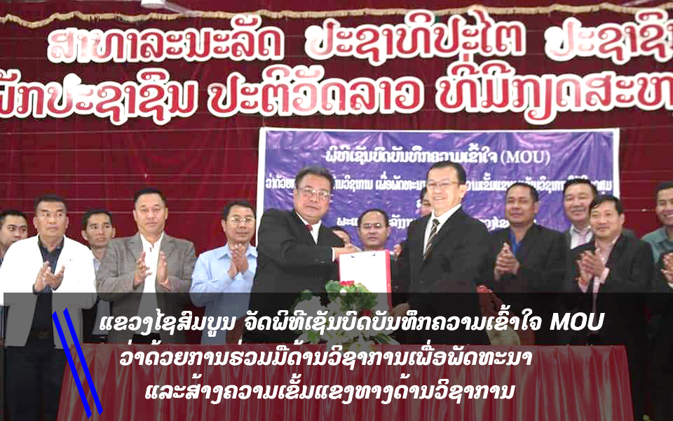 ໃນຕອນເຊົ້າຂອງວັນທີ 11 ມີນາ 2021 ນີ້ພະແນກພະລັງງານ ແລະບໍ່ແຮ່ ແຂວງໄຊສົມບູນ ຈັດພິທີເຊັນບົດບັນທຶກຄວາມເຂົ້າໃຈ MOU ວ່າດ້ວຍການຮ່ວມມືດ້ານວິ ຊາການເພື່ອພັດທະນາ ແລະ ສ້າງຄວາມເຂັ້ມແຂງທາງດ້ານວິຊາການໃຫ້ມີຈຸດສຸມກັບວິທະຍາໄລເຕັກນິກສັບພະວິຊາທີ່ສະໂມສອນເມືອງອະນຸວົງ