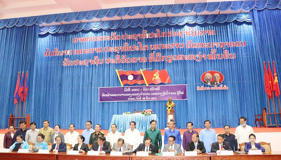 ພິທີມອບ-ຮັບໜ້າທີ່ຫົວໜ້າພະແນກການ 7 ພາກສ່ວນພາຍໃນແຂວງຄໍາມ່ວນລະຫວ່າງຜູ້ເກົ່າ ແລະຜູ້ໃໝ່ໄດ້ຈັດຂຶ້ນຢ່າງເປັນທາງການໃນຕອນບ່າຍຂອງວັນທີ 5 ມີ ນາ 2021 ຢູ່ທີ່ສະໂມສອນໃຫຍ່ຂອງແຂວງ (ຫຼັກ 4)