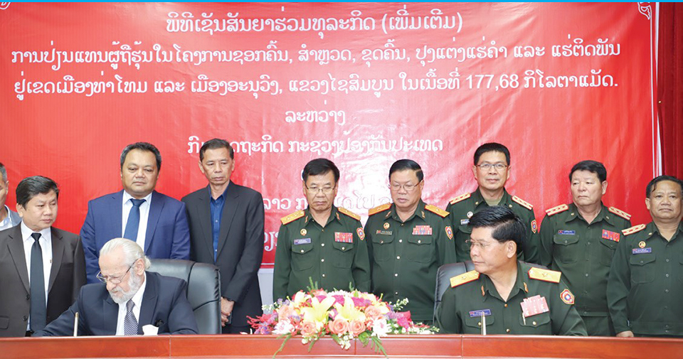 ວັນທີ 5 ກຸມພາ 2021 ທີ່ກົມເສດຖະກິດກະຊວງປ້ອງກັນປະເທດໄດ້ມີພິທີເຊັນສັນຍາຮ່ວມທຸລະກິດເພີ່ມເຕີມການປ່ຽນແທນຜູ້ຖືຮຸ້ນໃນໂຄງການຊອກຄົ້ນສໍາຫຼວດຂຸດຄົ້ນປຸງແຕ່ງແຮ່ຄໍາ ແລະແຮ່ຕິດພັນຢູ່ເຂດເມືອງທ່າໂທມ ແລະເມືອງອະນຸວົງ ແຂວງໄຊສົມບູນ