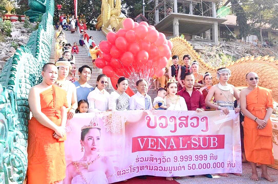 ທ້າຍອາທິດຜ່ານມາທີ່ວັດທົ່ງທາດ, ບ້ານຫ້ອມໃຕ້ ເມືອງຫາດຊາຍຟອງ ນະຄອນຫຼວງວຽງຈັນ ເຈົ້າຂອງສິນຄ້າຫຍີ່ຫໍ້ໄດ້ຈັດພິທີຟ້ອນບວງສວງພະຍານາກໂດຍມີບັນ ດານາງລຳກວ່າ 20 ຄົນ ເພື່ອເອົາເລິກເອົາໄຊພ້ອມເປີດໂຕຜະລິດຕະພັນໃໝ່ VENA L-Sub ໂດຍມີຄອບຄົວ,