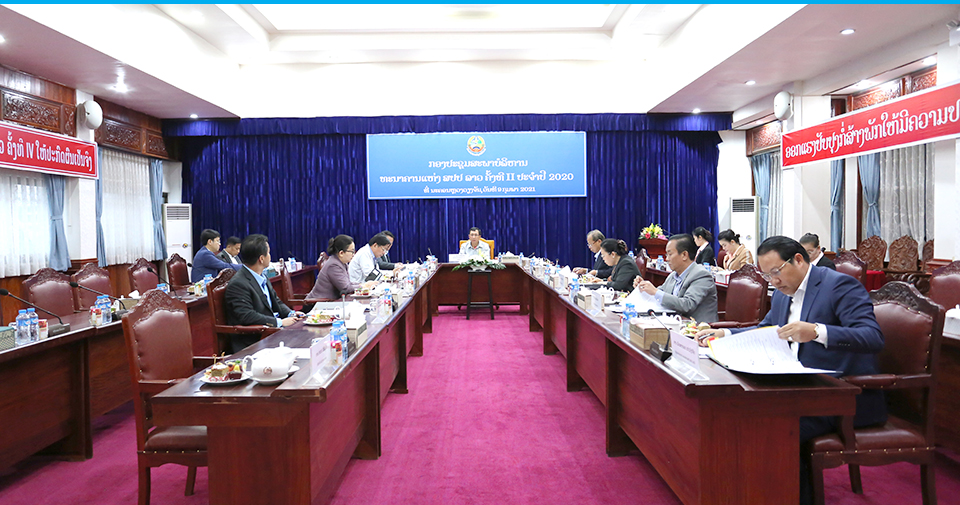 ກອງປະຊຸມສະພາບໍລິຫານທະນາຄານແຫ່ງ ສປປ ລາວ (ທຫລ) ຄັ້ງທີ II ປະຈຳປີ 2020 ໄດ້ສຳເລັດລົງດ້ວຍໝາກຜົນຈົບງາມໃນວັນທີ 9 ກຸມພາ 2021 ທີ່ຫ້ອງປະຊຸມ ທຫລ ໂດຍການໃຫ້ກຽດເປັນປະທານຂອງທ່ານ ສອນໄຊ ສິດພະໄຊ ກຳມະການສູນກາງພັກ,