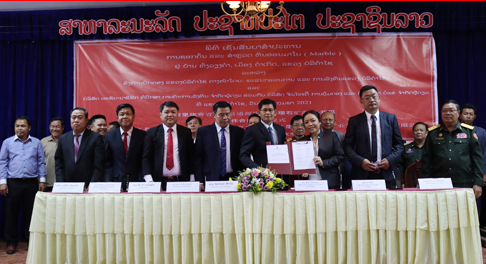 ພິທີເຊັນສັນຍາລົງນາມວ່າດ້ວຍການລົງທຶນສຳປະທານຊອກຄົ້ນ ແລະສຳຫຼວດຫີນອ່ອນມາໂບຢູ່ບ້ານທົ່ງວຽງ ຄຳເມືອງຄຳເກີດ ລະຫວ່າງແຂວງບໍລິຄຳໄຊ ແລະບໍລິສັດເອເຊຍປາຊີຟິກທີ່ປຶກສາການຄ້າການລົງທຶນ ຈຳກັດຜູ້ດຽວ ຮ່ວມກັບບໍລິສັດຈີນໄທເຕີ້ການຄຸ້ມຄອງ ແລະ ພັດທະນາບໍ່ແຮ່ຈຳກັດຜູ້ດຽວ