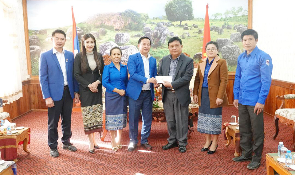 ທ່ານ ປອ ຄຳແສນ ສີສະວົງ ຄະນະເລຂາທິການສູນກາງຊາວໜຸ່ມປະຊາຊົນປະຕະວັດລາວປະທານສະມາຄົມນັກທຸລະກິດໜຸ່ມແຫ່ງຊາດລາວ (ສທໜ) ພ້ອມດ້ວຍຄະນະໄດ້ມອບເງິນຈຳນວນ 20 ລ້ານກີບ ໃຫ້ແຂວງຊຽງຂວາງໃນວັນທີ 22 ມັງກອນ 2021