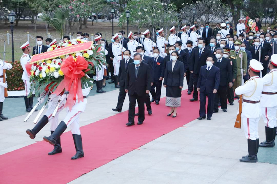 ຂປລ. ໃນວັນທີ 12 ມັງກອນ 2021 ນີ້, ການນໍາຂັ້ນສູງຂອງພັກປະຊາຊົນ ປະຕິວັດລາວ ນໍາໂດຍ ສະຫາຍ ບຸນຍັງ ວໍລະຈິດ ເລຂາທິການໃຫຍ່ຄະນະບໍລິຫານງານສູນກາງພັກ ປະຊາຊົນປະຕິວັດລາວໄດ້ໄປວາງພວງມາລາຢູ່ອະນຸສາວະລີນັກຮົບນິລະນາມ (ດາວແດງ) ນະຄອນຫລວງວຽງຈັນ