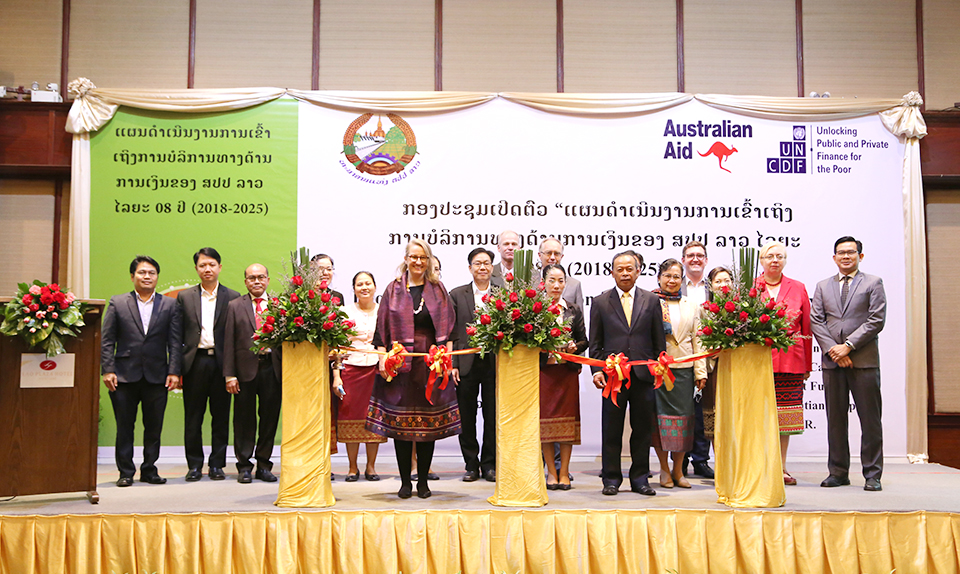 ທະນາຄານແຫ່ງ ສປປ ລາວ (ທຫລ) ຮ່ວມກັບລັດຖະບານອົດສະຕຣາລີ ແລະກອງທຶນເພື່ອການພັດທະນາອົງການສະຫະປະຊາຊາດ (UNCDF) ໄດ້ຈັດຕັ້ງການນຳສະເໜີ “ແຜນດຳເນີນງານການເຂົ້າເຖິງການບໍລິການທາງດ້ານການເງິນຂອງ ສປປ ລາວ ໄລຍະ 8 ປີ (2018-2025)”
