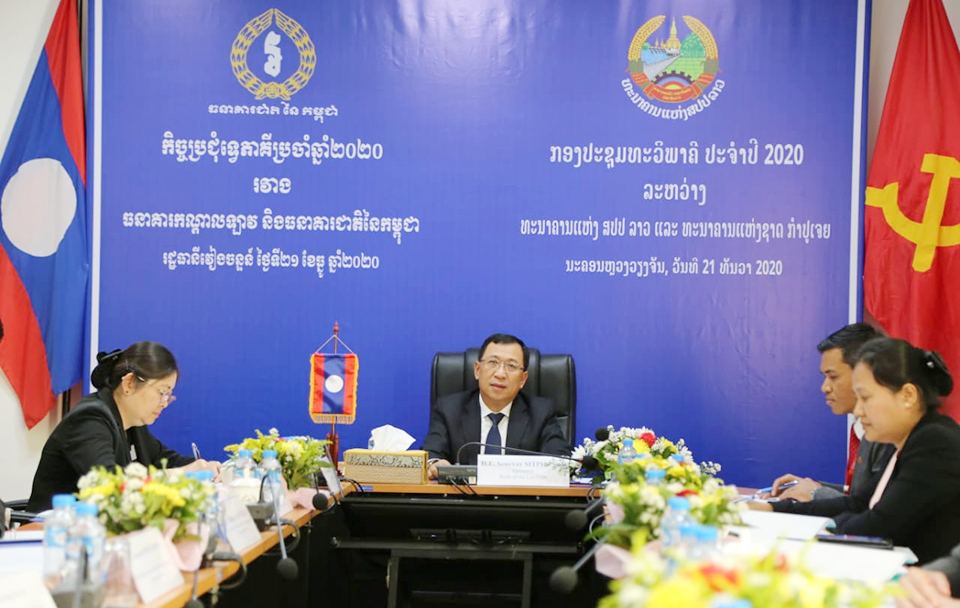 ໃນວັນທີ 21 ທັນວາ 2020 ທີ່ທະນາຄານແຫ່ງ ສປປ ລາວ (ທຫລ) ໄດ້ມີກອງປະຊຸມທະວິພາຄີປະຈຳປີ 2020 (ແບບທາງໄກ) ລະຫວ່າງທະນາຄານແຫ່ງ ສປປ ລາວ ແລະ ທະນາຄານແຫ່ງຊາດກໍາປູເຈຍ