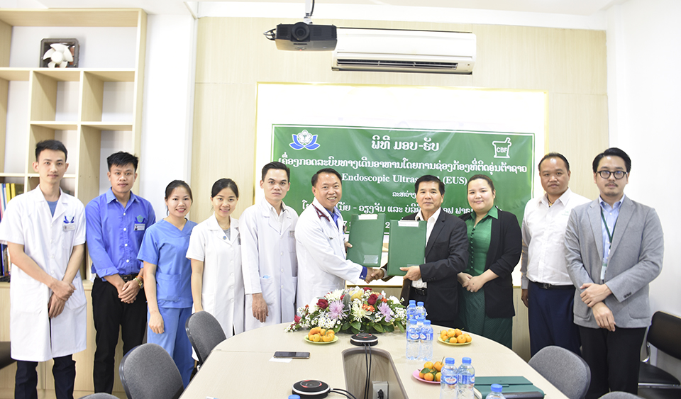 ວັນທີ 17 ທັນວາ ຜ່ານມາ ທີ່ນະຄອນຫຼວງວຽງຈັນ ບໍລິສັດ ຊີບີເອຟ ຟຣາມາ ແລະໂຮງໝໍຮ່າໂນ່ຍ-ວຽງຈັນ ໄດ້ຈັດພິທີມອບ-ຮັບເຄື່ອງກວດລະບົບທາງເດີ່ນອາຫານໂດຍຜ່ານການຊ່ອງກ້ອງທີ່ຕິດອຸ່ນຕ້າຊາວໂດຍມີທ່ານ ດຣ. ຈິນດາ ວົງສຸລິ ຜູ້ອຳນວຍການໃຫ່ຍບໍລິສັດ ຊີບີເອຟ ຟຣາມາ,