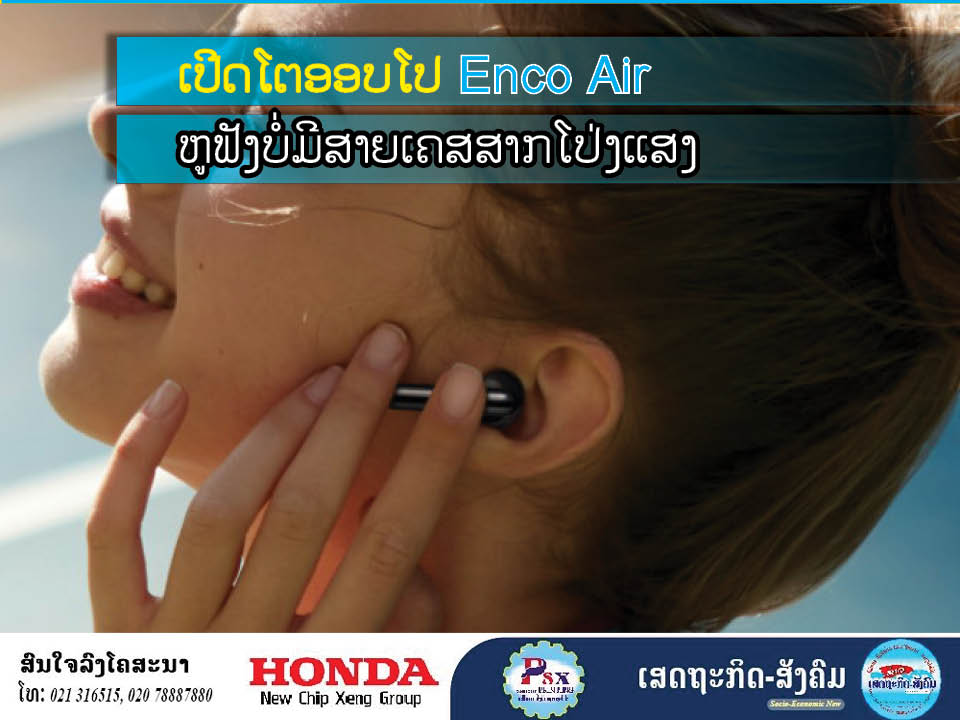 ອອບໂປ ໄທແລນເປີດໂຕ OPPO Enco Air ຫູຟັງບໍ່ມີສາຍລຸ້ນຫຼ້າສຸດສົ່ງມອບນະວັດຕະກຳ IoT ຄູ່ຫູເພື່ອຊີວິດແບບສະມາດ ໄລຟ ພາຍໃຕ້ແນວຄິດ”Sound You Can See” ສູ່ປະສົບການແຫ່ງສຽງທີ່ສຳຜັດໄດ້ມາໃນດິໄຊບໍ່ມີກົດເກນດ້ວຍເຄສສາກແບບໂປ່ງແສງ.