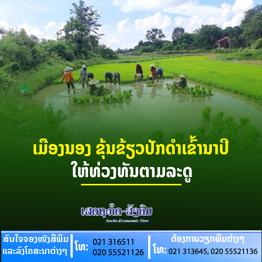 ການປັກດຳເຂົ້ານາປີຂອງເມືອງນອງ ແຂວງສະຫວັນນະເຂດ ໃນປີນີ້ມີຄວາມລ່າຊ້າກວ່າປີຜ່ານມາເນື່ອງຈາກພໍ່ແມ່ປະຊາຊົນໄດ້ຫັນໃສ່ການປູກມັນຕົ້ນເປັນສິນຄ້າຢ່າງເປັນຂະບວນການຟົດຟື້ນ.