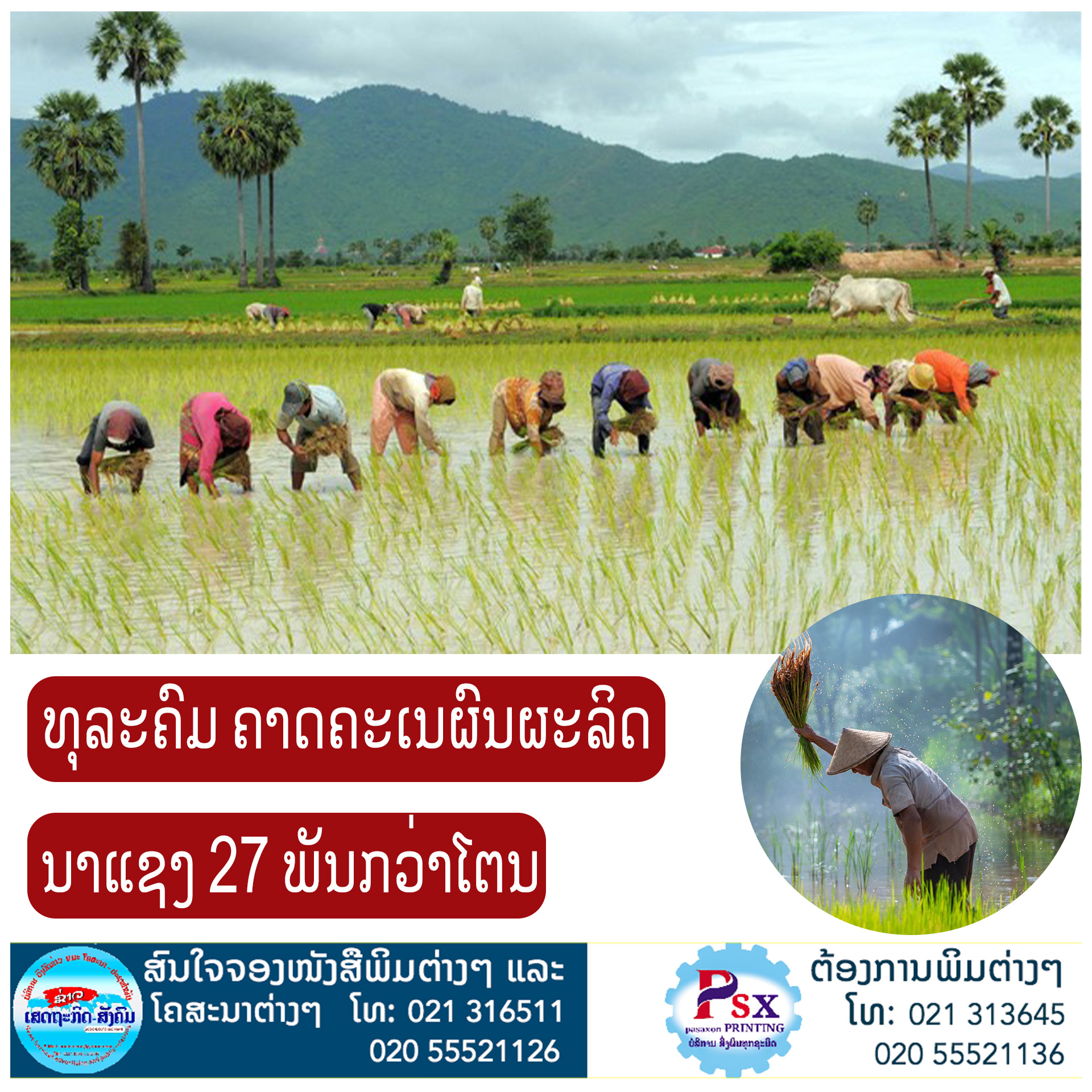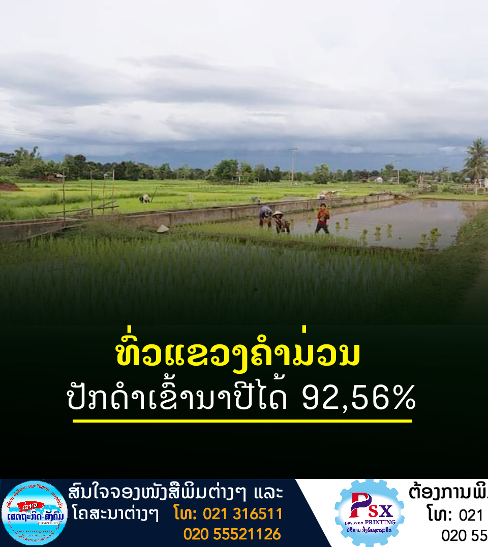 ຕາມການລາຍງານຈາກທ່ານ ບຸນຈັນ ໄຊປັນຍາ ຫົວໜ້າພະແນກກະສິກໍາ ແລະປ່າໄມ້ແຂວງຄໍາມ່ວນໃຫ້ຮູ້ວ່າ: ໃນລະດູການຜະລິດເຂົ້ານາປີ 2022 ນີ້ທົ່ວແຂວງມີເນື້ອທີ່ນາລວມຕາມແຜນການ 90.236 ເຮັກຕາ, ໝົດແນວເຂົ້າປູກ 5.414 ໂຕນ,