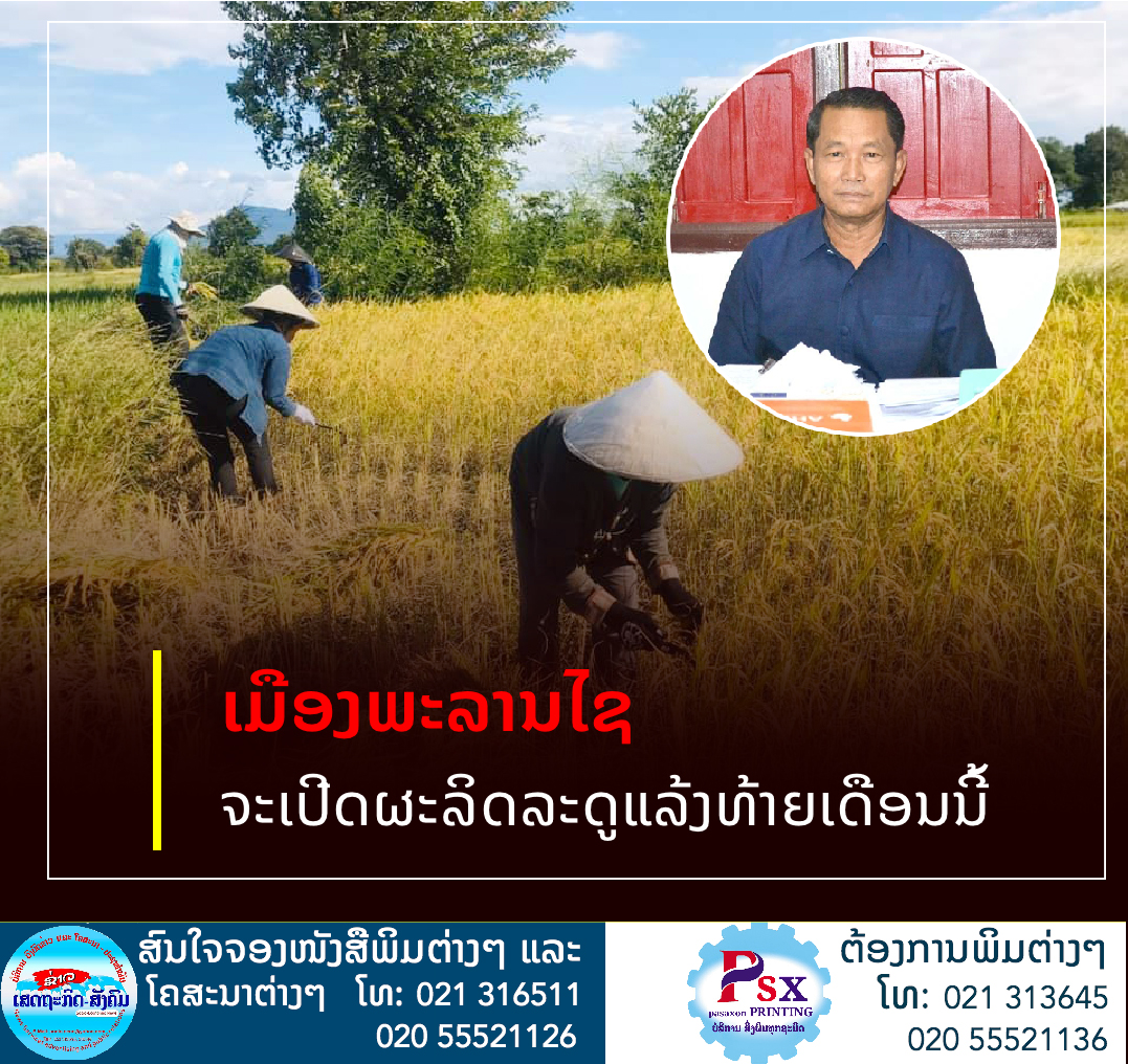 ເມືອງພະລານໄຊ ແຂວງສະຫວັນນະເຂດ ມີແຜນເປີດການຜະລິດລະດູແລ້ງພາຍຫຼັງເກັບມ້ຽນເຂົ້ານາປີແລ້ວໂດຍລະບຸໃນທ້າຍເດືອນພະຈິກ 2021