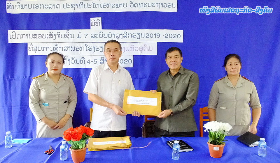 ວັນທີ 4 ສິງຫາ 2020 ສູນການສຶກສານອກໂຮງຮຽນ ເມືອງແກ້ວອຸດົມ ແຂວງວຽງຈັນ ໄດ້ຈັດພິທີເປີດການສອບເສັງຈົບຊັ້ນ ມ7 ບໍາລຸງສົກຮຽນ 2019-2020 ຂຶ້ນໂດຍການໃຫ້ກຽດເຂົ້າຮ່ວມຂອງທ່ານ ວິສັນ ສົມພົງ ຮອງຫົວໜ້າກົມການສຶກສານອກໂຮງຮຽນກະຊວງສຶກສາທິການ ແລະກີລາ,