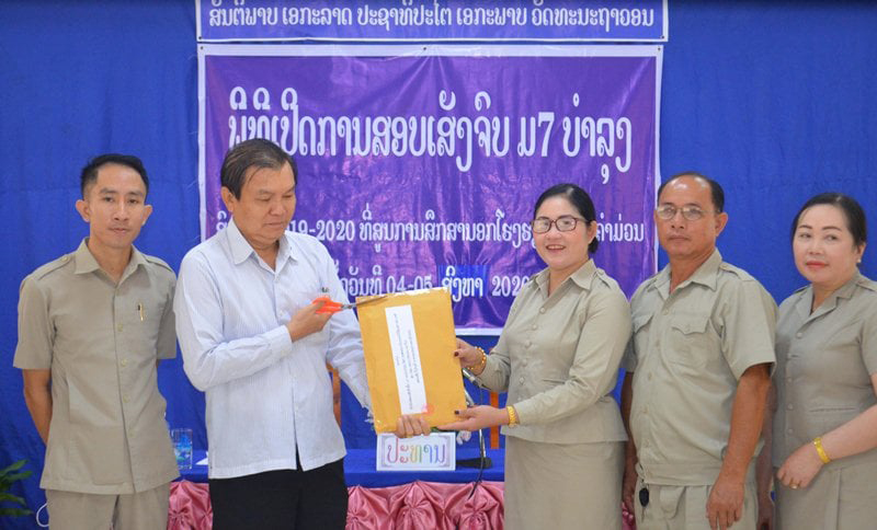 ວັນທີ 4 ສິງຫາ 2020 ພະແນກສຶກສາທິການ ແລະກີລາ ແຂວງສະຫວັນນະເຂດ ໄດ້ຈັດພິທີ ເປີດຫົວບົດສອບເສັງ ມ7 ບໍາລຸງ ທົ່ວແຂວງສະຫວັນນະເຂດປະຈໍາ ສົກຮຽນ 2019-2020, ໂດຍ ໃຫ້ກຽດເປັນປະທານມີ