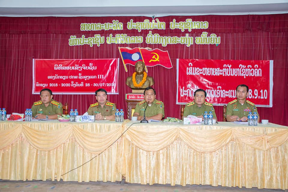 ໃນວັນທີ 28-30 ກໍລະກົດ 2020 ໂຮງຮຽນ ປກສ ຊັ້ນສູງເລກ 3 ກອງບັນຊາການ ປກສ ແຂວງ ສະຫວັນນະເຂດ, ໄດ້ຈັດພິທີສອບເສັງຈົບຊັ້ນໃຫ້ແກ່ນັກຮຽນຮຸ່ນທີ 1, ໂດຍການໃຫ້ກຽດເຂົ້າຮ່ວມຂອງ ທ່ານ ພັທ ຄອນ