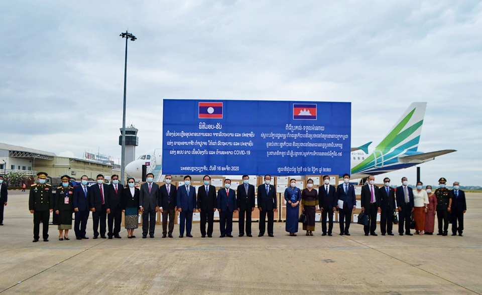 ລັດຖະບານ ແລະປະຊາຊົນກໍາປູເຈຍໄດ້ມອບອຸປະກອນການແພດໃຫ້ແກ່ລັດຖະບານ ແລະປະຊາຊົນລາວເພື່ອນຳໃຊ້ເຂົ້າໃນການຕ້ານ ແລະສະກັດກັ້ນການແຜ່ລະບາດຂອງເຊື້ອພະຍາດໂຄວິດ-19 ໂດຍມີພິທີມອບ-ຮັບຂຶ້ນໃນວັນທີ 16 ພະຈິກ 2020 ທີ່ສະໜາມບິນສາກົນວັດໄຕນະຄອນຫຼວງວຽງຈັນ