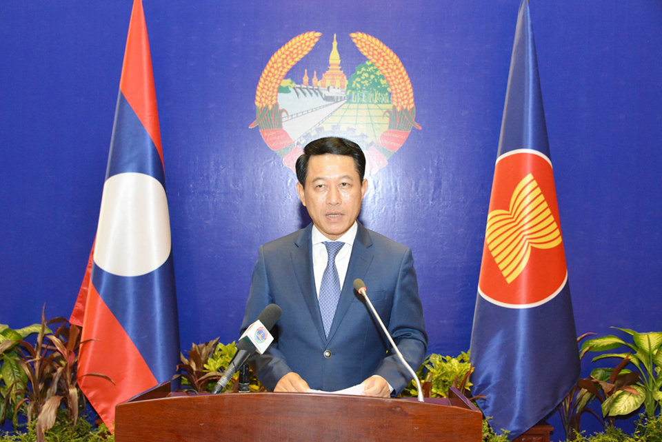 ທ່ານ ສະເຫຼີມໄຊ ກົມມະສິດ ລັດຖະມົນຕີກະຊວງການຕ່າງປະເທດ ແຫ່ງ ສປປ ລາວ ໄດ້ຖະແຫຼງຂ່າວຕໍ່ສື່ມວນຊົນໃນວັນທີ 15 ພະຈິກ 2020 ທີ່ຫໍປະຊຸມແຫ່ງຊາດ, ກ່ຽວກັບຜົນສໍາເລັດການເຂົ້າຮ່ວມກອງປະຊຸມສຸດຍອດອາຊຽນ ຄັ້ງທີ 37