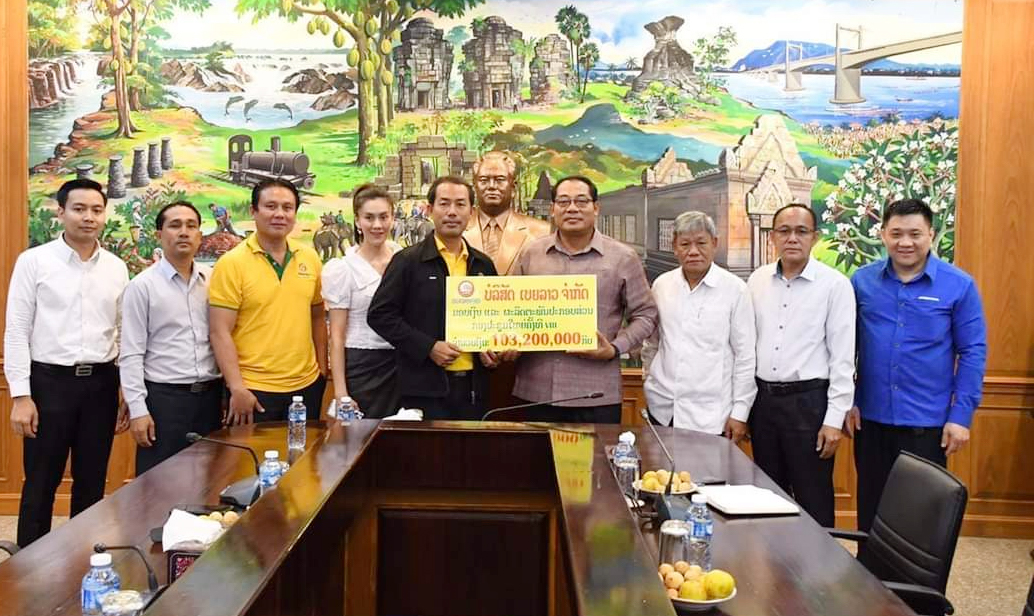 ບໍລິສັດ ເບຍລາວ ແຂວງຈຳປາສັກ ໄດ້ມອບນໍ້າດື່ມ ແລະເງິນສົດລວມມູນຄ່າ 100 ລ້ານກວ່າກີບ ໃຫ້ແກ່ແຂວງຈຳປາສັກ ເພື່ອສະໜັບສະໜູນຮັບໃຊ້ໃຫ້ແກ່ກອງປະຊຸມໃຫຍ່ຜູ້ແທນອົງຄະນະພັກແຂວງຈຳປາສັກ ຄັ້ງທີ VIII ທີ່ຈະເປີດຂຶ້ນໃນມໍ່ໆນີ້.