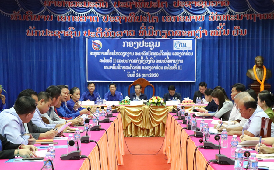 ວັນທີ 24 ຕຸລາ 2020 ສະມາຄົມນັກທຸລະກິດໜຸ່ມ (ສທໜ) ແຂວງຄຳມ່ວນ ໄດ້ສະຫຼຸບການເຄື່ອນໄຫວວຽກງານສະໄໝທີ II ພ້ອມທັງປະກາດບົ່ງຕົວຄະນະສະມາຄົມຊຸດໃໝ່ສະໄໝທີ III ຊຶ່ງ ໄດ້ຈັດຂຶ້ນທີ່ຫ້ອງວ່າການແຂວງຄໍາມ່ວນໂດຍການເປັນປະທານຂອງທ່ານ ໄຊສົງຄາມ ວໍລະຈິດ ປະທານ ສທໜ ແຂວງຄຳມ່ວນ,