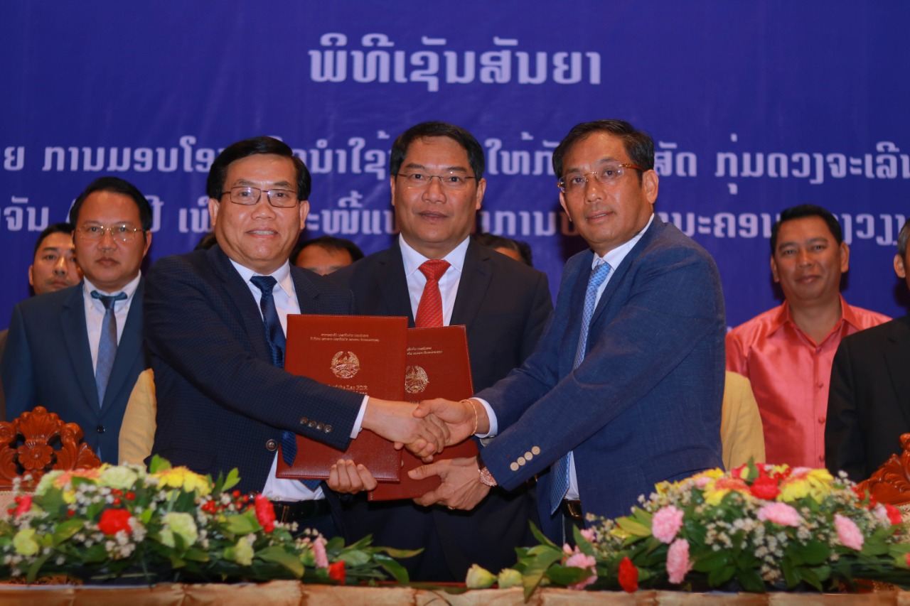 ພິທີລົງນາມສັນຍາການມອບ-ໂອນສິດນໍາໃຊ້ທີ່ດິນລະຫວ່າງນະຄອນຫຼວງວຽງຈັນ-ທະນາຄານແຫ່ງ ສປປ ລາວ (ທຫລ) ແລະບໍລິສັດ ກຸ່ມດວງຈະເລີນພັດທະນາກໍ່ສ້າງ ຈໍາກັດຜູ້ດຽວ ໄດ້ຈັດຂຶ້ນໃນວັນທີ 23 ຕຸລາ 2020 ທີ່ໂຮງແຮມແລນມາກແມ່ຂອງລີເວີໄຊໂດຍການໃຫ້ກຽດເຂົ້າຮ່ວມ