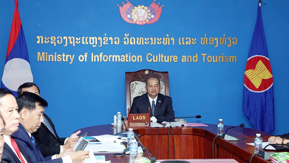 ກອງປະຊຸມທາງໄກ ລັດຖະມົນຕີ ຮັບຜິດຊອບວຽກງານວັດທະນະທຳ ແລະສິລະປະອາຊຽນຄັ້ງທີ 9 ພາຍໃຕ້ຫົວຂໍ້ “ຜົນກະທົບຂອງໂຄວິດ-19 ແລະທິດທາງຕໍ່ໜ້າຢູ່ໃນຂົງເຂດວຽກງານວັດທະນະທຳ ແລະສິລະປະ”, ໄດ້ຈັດຂຶ້ນໃນຕອນເຊົ້າຂອງວັນທີ 22 ຕຸລາ 2020