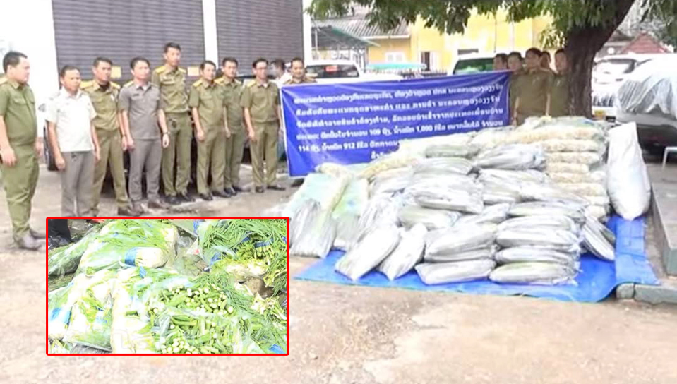 ພະແນກຕໍາຫຼວດປ້ອງກັນເສດຖະກິດຫ້ອງຕໍາຫຼວດ ປກສ ນະຄອນຫຼວງວຽງຈັນ ໄດ້ສົມທົບກັບພະແນກອຸດສະຫະກໍາການຄ້າ ນວ ທໍາລາຍສິນຄ້າປະເພດພືດຜັກທີ່ນໍາເຂົ້າບໍ່ຖືກຕ້ອງ ແລະບໍ່ໄດ້ຮັບການກວດກາລວມມີ: ຜັກບົ່ວໃບຈໍານວນ 109 ຖົງ, ມີນໍ້າໜັກ 1,090 ກິໂລກຣາມ; ຜັກກາດນາ 14 ຖົງ,