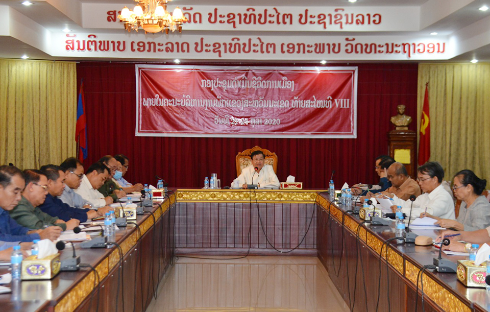 ໃນວັນທີ 21-22 ຕຸລາ 2020 ສະຫາຍ ທອງລຸນ ສີສຸລິດ, ກຳມະການກົມການເມືອງສູນກາງພັກ, ນາຍົກລັດຖະມົນຕີໄດ້ໃຫ້ກຽດເຂົ້າຮ່ວມກອງປະຊຸມດຳເນີນຊີວິດການເມືອງພາຍໃນຄະນະບໍລິຫານງານພັກແຂວງສະຫວັນນະເຂດທ້າຍສະໄໝທີ VIII; ໂດຍມີສະຫາຍ ສັນຕິພາບ ພົມວິຫານ,